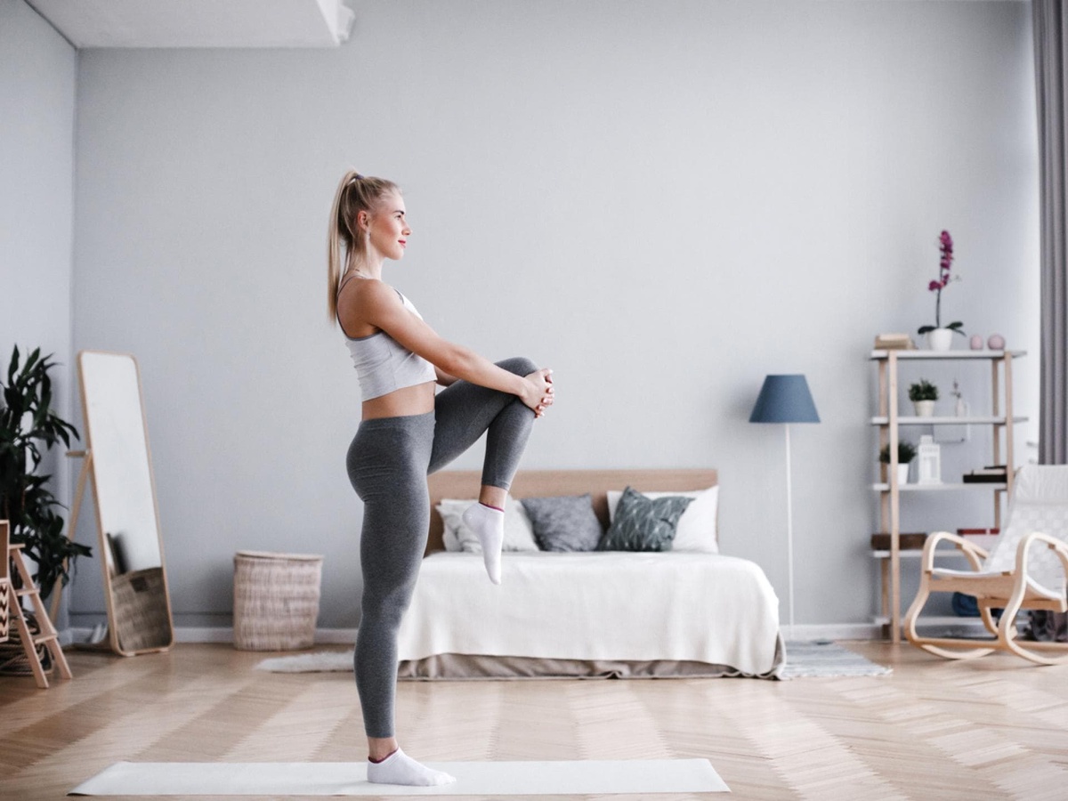 im Winter gesund abnehmen - junge Frau macht Übungen zu Hause