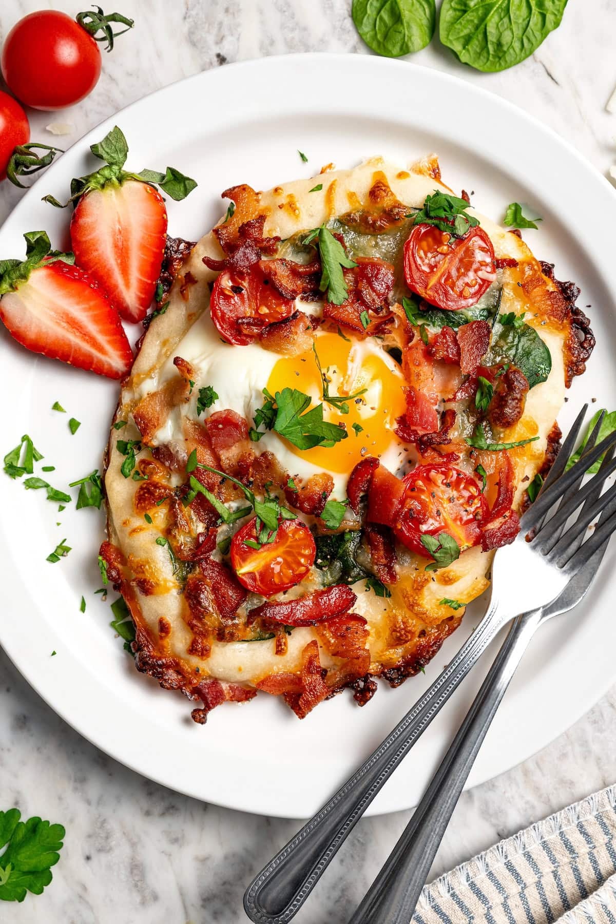 kleine Pizza mit Bratei, Salami und Cherry Tomaten