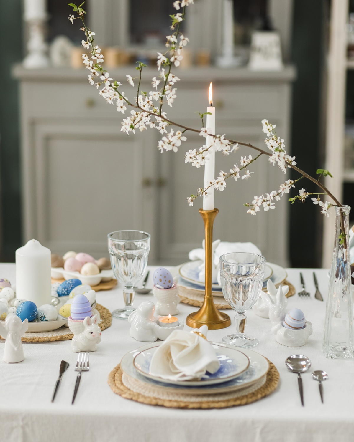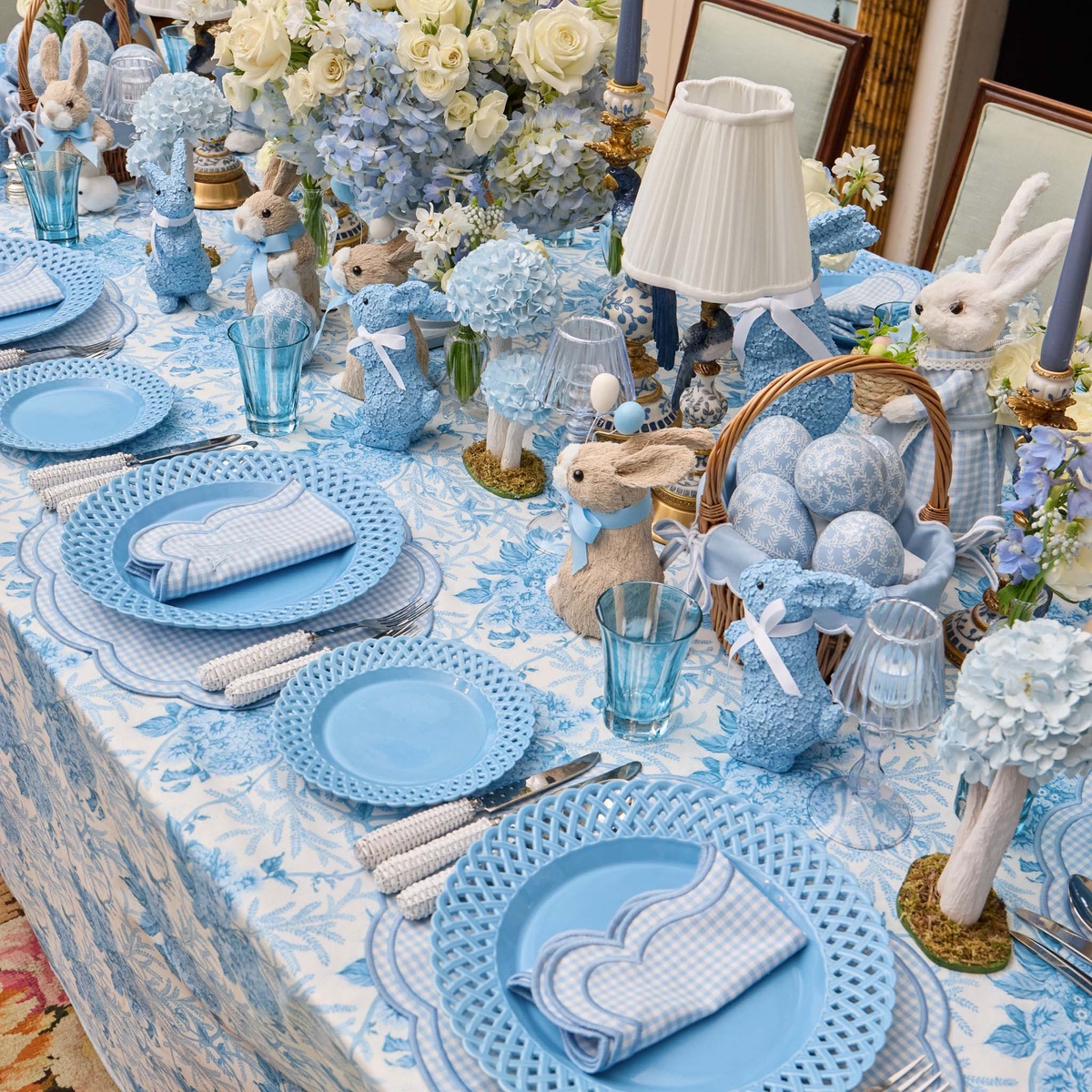 Ostertisch festlich gedeckt - Ton-in-Ton in Blau