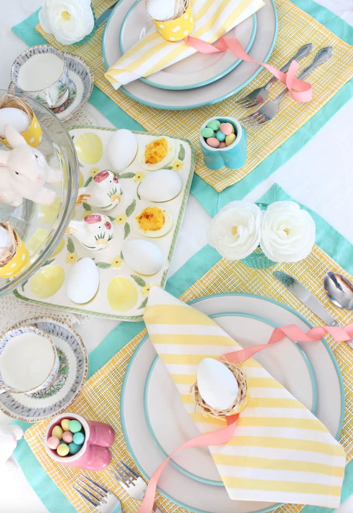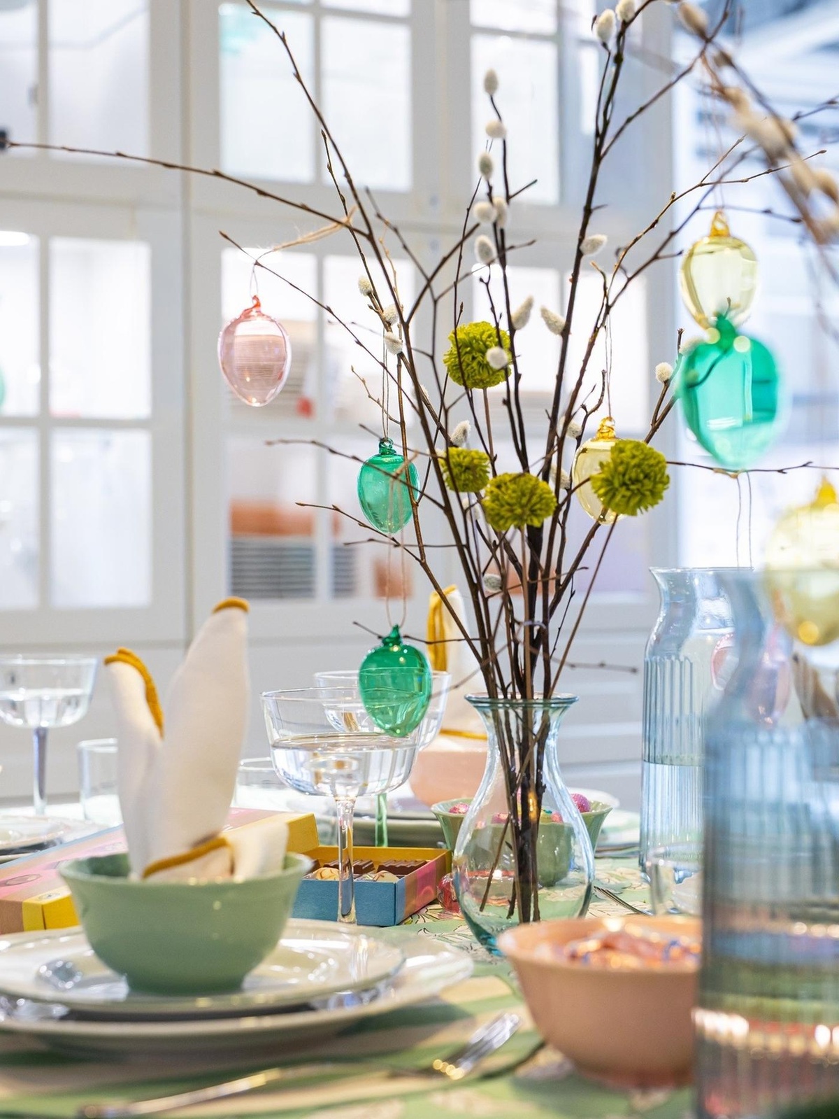 in hellen fröhlichen Farbtönen die Tischdeko zu Ostern gestalten